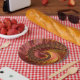 This beautiful round paper plate features an abstract fiery spiral fractal in red and yellow shades.