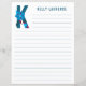 A fun and funky abstract floral design featuring letters of the alphabet. Lined paper is ready to write.