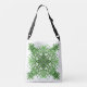 Abstract Floral Pattern In Black & Green On White Crossbody Bag