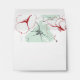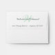 This envelope in fairly plain and simple on the outside but the inside features an elegant and romantic design with abstract garden flowers in deep red, light and dark teal colours. On the back flap is a return address template written in matching dark teal ink for you to personalise. It has a monogram with first names of couple.