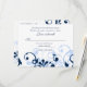 The text and background colour on this navy blue, pale blue, and white wedding reply (rsvp) card is fully customisable. To change the text use the personalise option. For more extensive changes to the card including changes to the font, font colour, background colour, or text placement, use the customise option. This is a lovely and elegant response card for a spring or summer wedding. Although currently customised for a wedding, this reply card would also work well for a variety of other special occasions. This card is currently set to print on metallic ice white paper, but also looks very nice on any of the other paper types. You could also change the wording on this card to make it a direction, reception, and/or accommodation card.