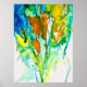 Beautiful original art painting of colourful abstract orange floral flower art. Bright vibrant colours. Watercolor fine art.