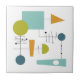 This fabulous mid century modern ceramic tile features squares, circles, triangles, and lines in the colours of turquoise, orange, green, blue, and black - just like a flowchart! This will make a funky addition to your tiling project. It's also great for those who love graphs and charts.