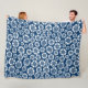 Abstract Flowers 031023 - White on Shibori Blue Fleece Blanket