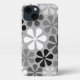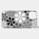 A fun and funky style abstract flower surface pattern design in black, white and greys.