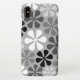 A fun and funky style abstract flower surface pattern design in black, white and greys.