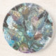 Delicately coloured abstract flowers adorn this sandstone coaster. Cork back. Sold singly.