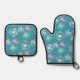 Abstract flowers on beautiful light blue tones oven mitt & pot holder set