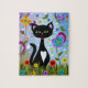Abstract Folk Art: Charming Black and White Kitty Jigsaw Puzzle