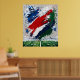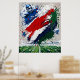 A dynamic abstract football artwork with bold splashes of red, blue, green, and white, capturing the energy and rivalry of the field in a modern expressive style.