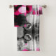Abstract Fuchsia, Grey and Black Grain Photo Art Bath Towel Set