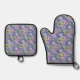 Abstract fun cartoon flowers floral kids scandinav oven mitt & pot holder set
