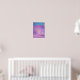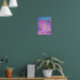 A beautiful blend of blues, purples and pinks with prisms bouncing off of a shimmering surface. Pink clouds swirl with a dusting of silver.