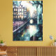 Abstract Geometric Amsterdam Skyline with Canal Canvas Print