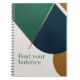 Abstract Geometric Art Modern notebook spiral minimalist with overlapping triangles and circles in jewel tones (emerald, sapphire, amber). Metallic gold accents and ‘Find Your Balance’ in tiny font.