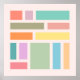A minimalist modern abstract geometric art design of rectangular blocks in pastel colours on a light beige background.