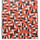 Geometric retro textile pattern in red, white, and black. Chic 1960s-inspired decor.