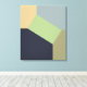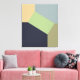 A modern minimalist abstract art design of rectangular geometric colour blocks in blue, green and brown colours.