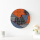 Abstract Geometric Composition: Orange Blue Patter Large Clock