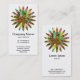 A clear stylish and attractive business card template with an attractive abstract filled geometric flower motif. Main company details on the front, with name and personal contact on the back, with the same motif and style.