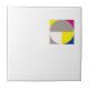 This artwork showcases a minimalist abstract geometric pattern prominently featuring circles. The colour palette consists of fuchsia, blue, and yellow, creating a visually striking composition. The overall aesthetic is reminiscent of 1970s style ceramic tile designs, capturing a retro vibe. The design is clean and uncluttered, emphasising the geometric shapes and the interplay of the chosen colours. The specific shapes used are circles, arranged in an abstract and non-representational manner, evocative of ceramic tile art from the seventies. The vibrant colours of fuchsia, blue and yellow are integral to the design's impact.