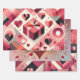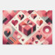 Abstract geometric hearts and bold colour blocks in shades of pink, coral, and burgundy Wrapping paper sheets of 3 set paper for Valentine's day.