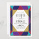 Abstract geometric jewel gemstone tones modern multicolored wedding invitation. This trendy contemporary wedding invite features triangles in jewel tones: navy blue, violet purple, ruby red, turquoise blue and gold. The triangles have FAUX printed outlines that look like glitter or gold foil.