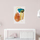 Unique abstract mid-century modern geometric shapes in striking bold colours ranging from yellow-gold to honey-amber and teal blue accented with a gold botanical leaf pattern. Ideal gift idea for the lover of contemporary wall decor.
