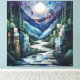 Illuminate your space with this breathtaking abstract geometric landscape. Featuring a glowing full moon casting soft light over a serene river winding through a majestic valley, this artwork blends natural beauty with bold, cubic abstraction. The lush green tones of pine trees and layered mountain hues of blue and purple evoke depth and tranquillity. Perfect for modern and minimalist interiors, this unique canvas is a stunning centerpiece for art lovers and nature-inspired decor enthusiasts.