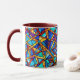 This is a Habatour Creations coffee mug, adorned with an authentic modern abstract geometric digital pattern design