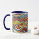 This is a Habatour Creations coffee mug, adorned with an authentic modern abstract geometric digital pattern design with wavy lines