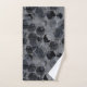 Abstract geometric textured pattern, black and grey background. Black, grey geometric shapes, honeycombs on a light grey striped background.