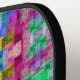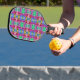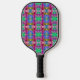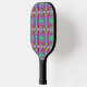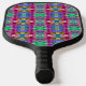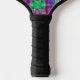 This pickleball paddle features a abstract geometric pattern in blue, pink, green and more colours. Fractal art. Personalizable! Cool pickleball paddle for her and him.