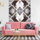 This striking abstract design blends urban architecture with natural elements in a mirrored geometric layout. Snow-covered tree branches intersect with blurred red brick buildings and windows, creating a dynamic kaleidoscopic effect. The muted tones of grey, brown, and white evoke a wintry cityscape, while the symmetry adds balance and modern sophistication.