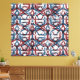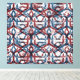 Red and blue geometric patterns blend harmoniously in this abstract decor.