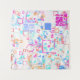 An abstract design of layered geometric shapes on a messy background.
