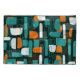Abstract geometric shapes add a vintage vibe.