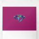 Abstract geometric jewel modern multicolored jewel tones ruby red wedding invitation. This modern wedding invite showcases a frame made of triangles in jewel tones: navy blue, violet purple, ruby red, turquoise blue and emerald green with a ruby red border on the cover and a diamond on the inside first and the outside last panels. There is also a photo of the couple on the outside middle panel with your initials and it has plenty of room for your wedding details.