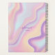 A modern and girly personalised planner. The design features a purple, pink, blue, and yellow abstract iridescent holographic background. Customise with your own text, name, and year.