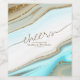This design set, with it's abstract pattern of flowing ripples and veins of glittering gold, brings to mind eye-catching rock formations, flowing sand dunes, and gentle ocean waves. The striking colours of sea and sand for this set adds to the appeal. The wine label shown here has all the above with template to easily add a message, names and wedding date. Search ID903 to see other colour choices and coordinating pieces for this unique wedding collection.