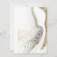This wedding design set, with it's abstract pattern of flowing ripples and veins of glittering gold, brings to mind eye-catching rock formations and sparkling gems. The neutral colour palette in shades from champagne to soapstone adds to the appeal. The invitation shown here has all the above with a light ivory background. Easily add your event details using the provided template. Search ID903 to see other colour choices and coordinating pieces for this unique wedding collection.