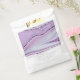 This wedding design set, with it's abstract pattern of flowing ripples and veins of glittering plum, brings to mind eye-catching rock formations and sparkling gems. The striking colour palette in shades from lilac and lavender to soft periwinkle adds to the appeal. The wedding favour bag shown here has all the above on a white background with a template to easily add a personal thank you message, your names and wedding date. Search ID903 to see other colour choices and coordinating pieces for this unique wedding collection.