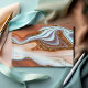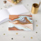 This wedding design set, with it's abstract pattern of flowing ripples and veins of glittering gold, brings to mind eye-catching rock formations and Southwestern landscapes. A colourful palette in shades from rust, and terra cotta through sky blue adds to the appeal. The guest book shown here has all the above with a layout that makes it stand out from the crowd. Easily add your initials and wedding date using the provided template. Search ID903 to see other colour choices and coordinating pieces for this unique wedding collection.