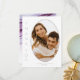 This wedding design set, with it's abstract pattern of flowing ripples and veins of glittering plum, brings to mind eye-catching rock formations and sparkling gems. The striking colour palette in shades from lilac and lavender to soft periwinkle adds to the appeal. The wedding 'Thank You' card shown here has all the above on a white background along with your favourite photo and a template to easily add your personal thank you message. Search ID903 to see other colour choices and coordinating pieces for this unique wedding collection.