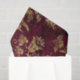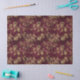 This abstract design showcases stencil-like gold flowers on a dark red background. Perfect for decoupage artwork, paper crafts, or gift wrapping.
