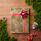 Abstract gold paper and sparkly gold Christmas tree on wrapping paper.