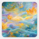 Abstract Golden Lotus Floating Flowers Square Sticker