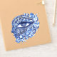 An illustrations of an abstract Greek evil eye and Greek key within a face. Which is the Greek and Turkish symbol of protection.