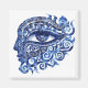 An illustrations of an abstract Greek evil eye and Greek key within a face. Which is the Greek and Turkish symbol of protection.