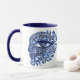 An illustrations of an abstract Greek evil eye and Greek key within a face. Which is the Greek and Turkish symbol of protection.